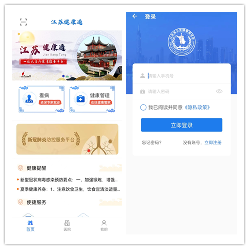 下载“江苏健康通”APP,选择“看病”,首次登录平台需注册。点击“互联网医院”,选择“线上复诊”,选择“出诊”专家,进行“图文问诊”或“视频问诊”。