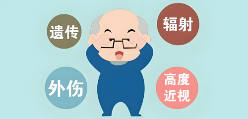 白内障发生与多种因素有关。年龄、紫外线照射、营养不良、糖尿病、高血压、心血管疾病、眼部外伤、过量饮酒、吸烟、缩瞳剂及糖皮质激素等药物的长期使用、青光眼和遗传等因素都可能增加白内障发生的风险。