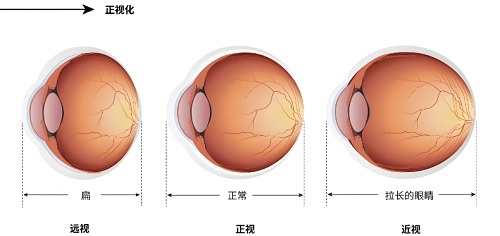 刚出生的婴儿眼轴明显短于成人,处于远视状态。在生长发育过程中眼轴前后径逐渐增长,大约到12岁眼球发育完全,达到正视状态,这个过程就称为正视化过程。