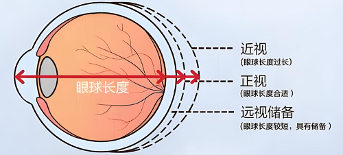 而达到正视状态之前的则为远视状态,婴儿出生时,眼轴大约16mm。三岁之前可以存在大约300度的远视,到了学龄期,仍然维持在200度左右远视。婴幼儿期这种轻度远视不会影响视力正常发育,属于生理性远视,也称为“远视储备”。