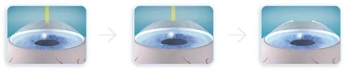 全飞秒手术无需制作角膜瓣,利用飞秒激光在角膜基质层上制作微透镜,再在角膜表面上做一个形如微笑的微小切口,用特制的显微眼内镊取出微透镜,来达到摘掉眼镜的目的。