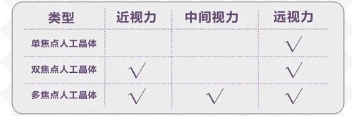 我们的视力分为近距离、中距离和远距离视力,也就是说我们之所以看清不同距离的视物,是因为自身晶状体的调节功能。不同朋友对术后视力有不同的要求,有些朋友需求是“看得见”,有些朋友追求不用戴镜的方便,这时大家需先了解人工晶体的特点。单焦点人工晶体:只能解决看远需求;双焦点人工晶体:可解决远近问题;三焦点人工晶体:可拥有看远、看中、看近,清晰舒适的全程视力。