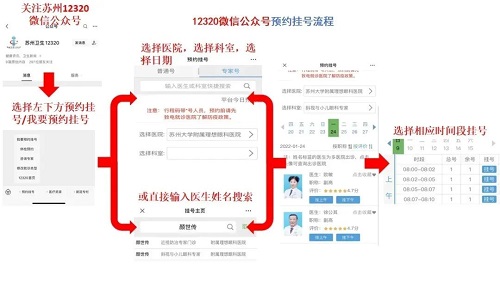 开展多种形式的预约,多个平台共享预约号源:12320微信公众号,12320网页,健康苏州掌上行,无线苏州,阳光医保、苏周到等。