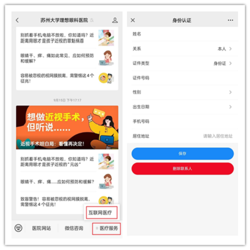 进入“william威廉亚洲官方”微信公众号,点击“医疗服务”——“互联网医疗”,进入页面,然后进行“身份认证”。