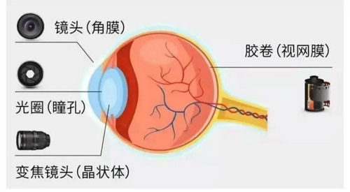 眼睛就相当于一台精密的胶卷照相机,前面是镜头,里面有一层薄膜相当于照相机的底片,我们称为“视网膜”。如果这个“胶卷”安装异常、移位或损坏,那么它是无法完成“成像”的,眼睛也亦是如此。