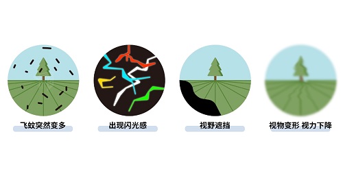 ● 闪光感:出现光斑、光点,一般出现在视野的边;