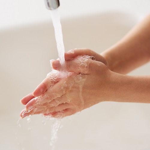 ② 配戴前使用中性肥皂或无脂质的洗手液彻底清洁双手,并使用干净的毛巾或无绒纸巾擦干双手。