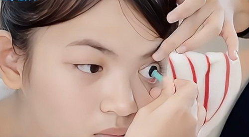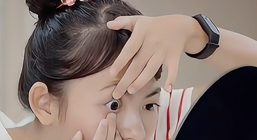 小提示:要保证镜片在黑眼珠上放置稳妥后,才可放开拉开眼见的手指。过早放开可能使镜片偏移或脱落。