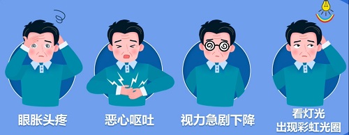 由于眼压增高,三叉神经末梢受到刺激,病人会有眼部不适和头部胀痛的感觉,严重者会出现恶心呕吐等症状。