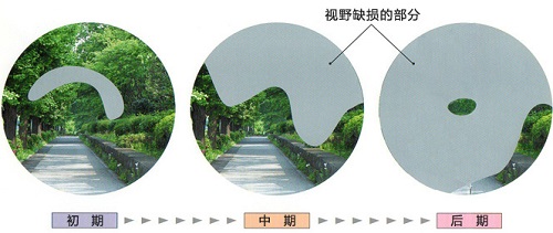 由于眼压升高,使视神经受压而引起神经纤维层损害,常表现为向心性视野缩小。