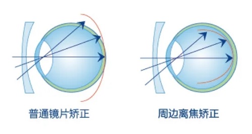 •佩戴多焦点离焦镜片:是一种采用中心及周边近视离焦原理设计的框架镜片,佩戴该镜片后,物体在眼内会形成一个聚焦像跟一个近视性离焦像,通过离焦像来控制眼轴生长及延缓近视加深,是目前被临床证实的控制近视加深的手段之一。