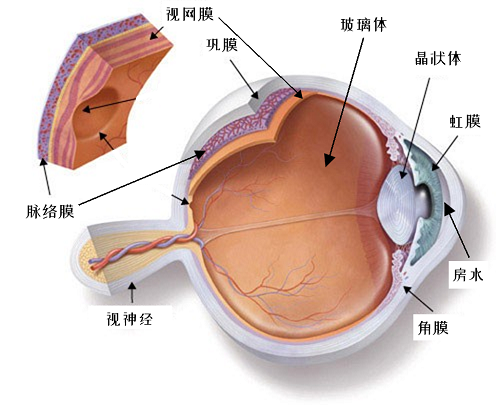 巩膜就好比照相机的相机外壳,既可以提供暗室效应,也能给眼球提供血液供应。视网膜就如照相机的图像传感器,外界物体通过角膜、晶状体成像在视网膜上,形成一个倒立的物象。质量越好,照片拍出来就越好,如果出现变质、破洞,那么就像视网膜变性、视网膜裂孔一样,我们的视觉质量就会产生严重的影响,会出现视物不清、变形、变色、视野缺损等等症状。