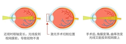 激光手术能满足大部分人的需求。简单讲,激光近视手术就是用激光把角膜削薄一点。度数越高,需要切的角膜就越厚,这也是为什么这类手术要求角膜达到一定厚度。