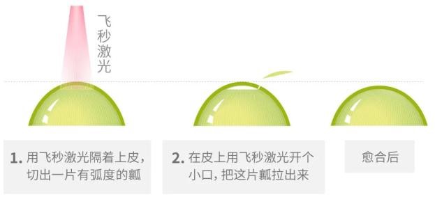 注:不要把葡萄想象成眼球,它只是角膜。不同激光手术的目的都是削一块葡萄,区别就在于削的时候皮怎么处理。