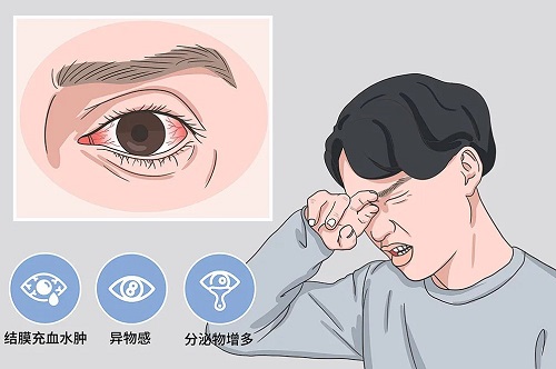 结膜炎症状明显,患者常会出现眼睛发红、干涩、眼痒、疼痛、异物感、怕光、分泌物多、流泪等症状,未波及角膜者视力,一般不受影响。不同类型的结膜炎在症状上略有不同,医生会结合患者的这些不同症状来评估类型。