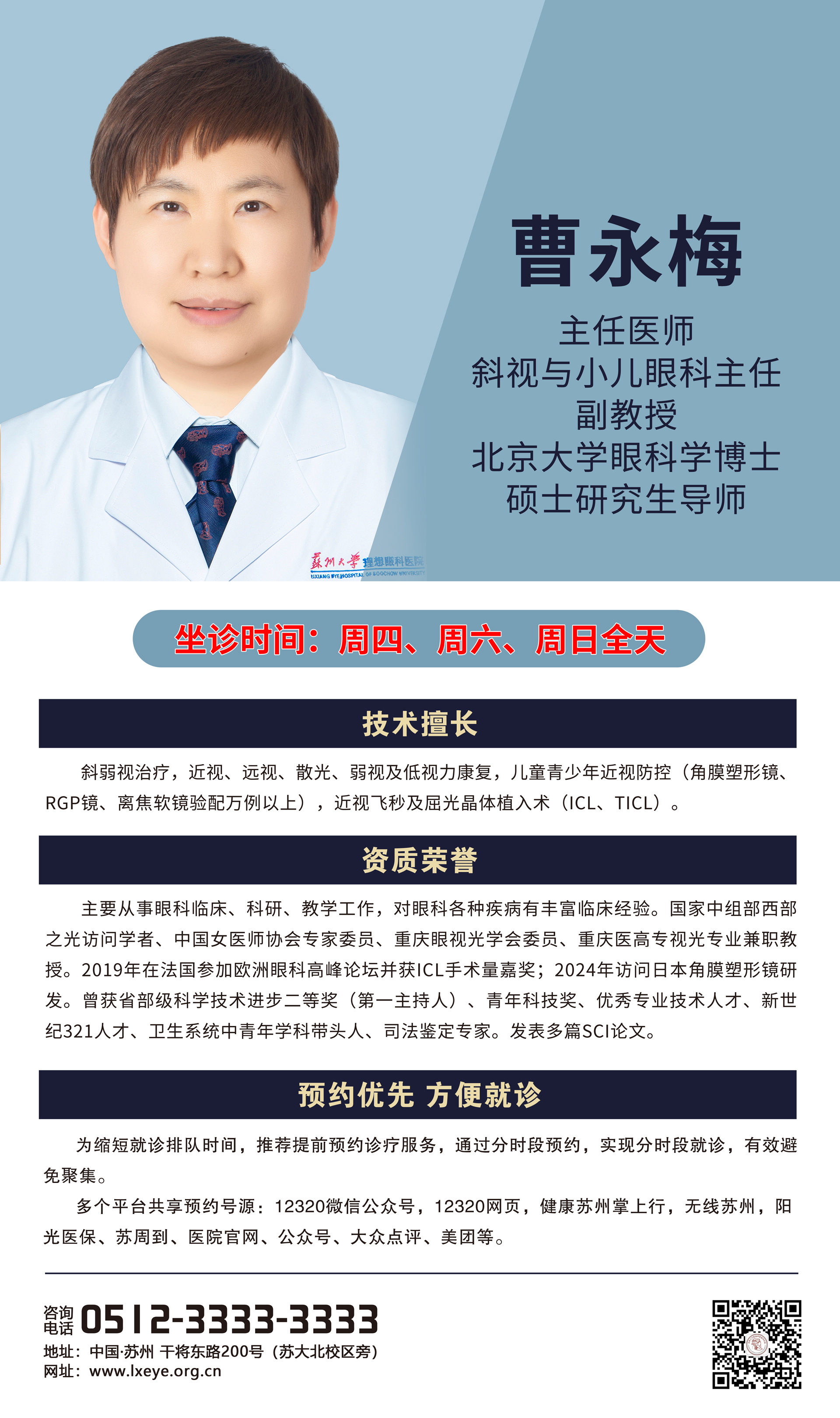 斜视与小儿眼科曹永梅主任周四、周六、周日全天坐诊