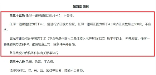 全国征兵网《应征公民体格检查标准》摘要中对于视力提出要求: