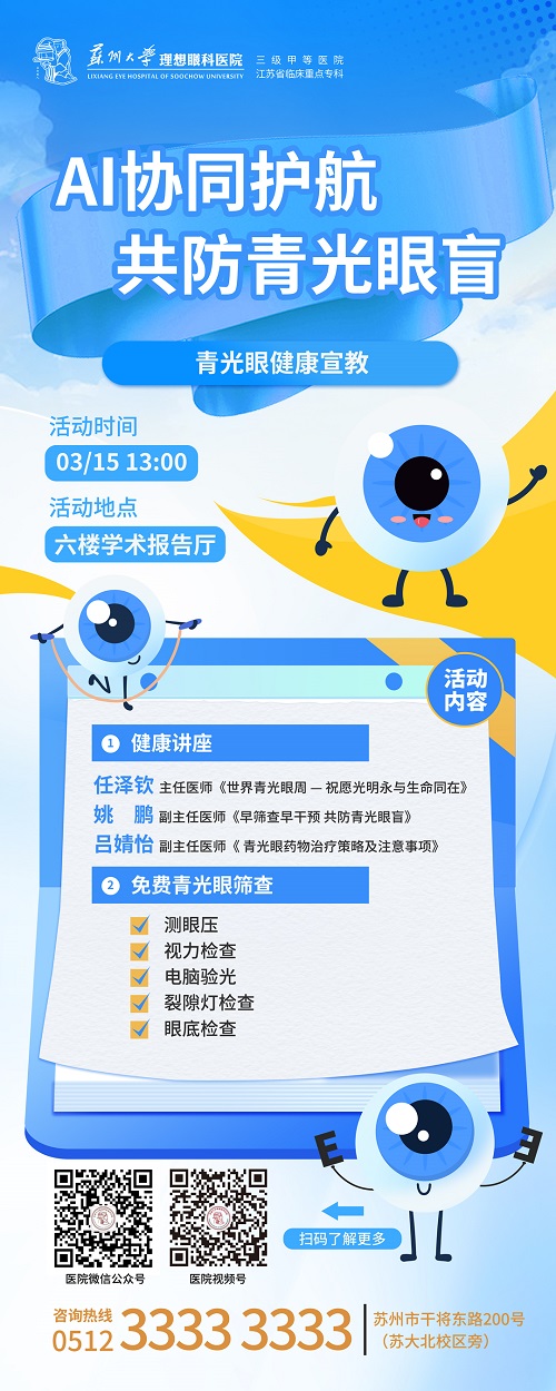 2025年3月9日至15日是第18个“世界青光眼周”,今年的主题是:AI协同护航,共防青光眼盲。为帮助市民朋友科学认识青光眼,提升疾病管理能力,3月15日,william威廉亚洲官方青光眼专科三甲专家团坐镇,携AI筛查技术,打造立体护眼方案,诚邀您的参与!