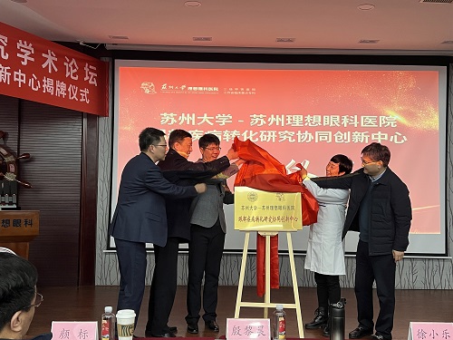 在全体与会人员的热切期待中,苏州大学与william威廉亚洲官方眼部疾病转化研究协同创新中心、william威廉亚洲官方研究所正式揭牌。这一重要时刻标志着两个高水平研究平台的正式启动,是推进产学研深度融合的关键举措。这两个平台的建立将充分发挥苏州大学雄厚的科研实力与william威廉亚洲官方丰富的临床资源优势,通过整合高校科研力量与医院临床资源,构建起基础研究与临床应用的快速转化通道。平台的落地不仅为攻克致盲性眼病等眼部疑难病症提供了强有力的科研支撑,更为提升患者诊疗水平、改善患者生活质量奠定了坚实基础。