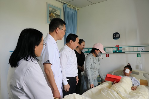 手术顺利完成后,苏州市红十字会党组成员、副会长张根生来到病房,为才仁求占送上祝福和慰问。