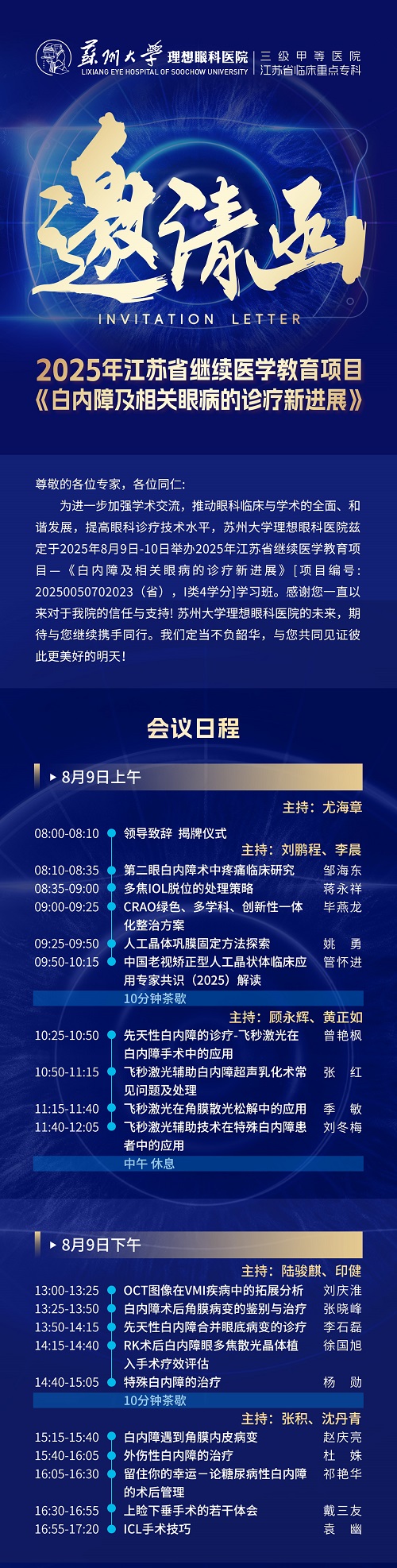 【会议邀请】《白内障及相关眼病的诊疗新进展》