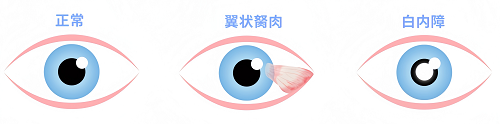 但本质上两者存在着区别,白内障是晶状体浑浊,翼状胬肉是眼表组织增生,二者的病因、症状、治疗方式也截然不同。