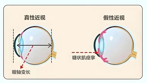 假性近视是由于用眼过度导致睫状肌持续收缩痉挛,晶状体厚度增加,但眼球尚未发生器质性改变,通过科学干预是可以恢复的;而真性近视则是眼轴变长,无法自然逆转。