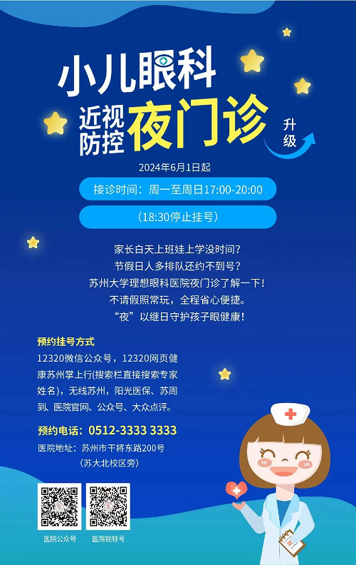 若白天时间不方便,医院已加开小儿眼科夜门诊(17:00–20:00),验光、配镜、视功能检查、复查等全部开放。